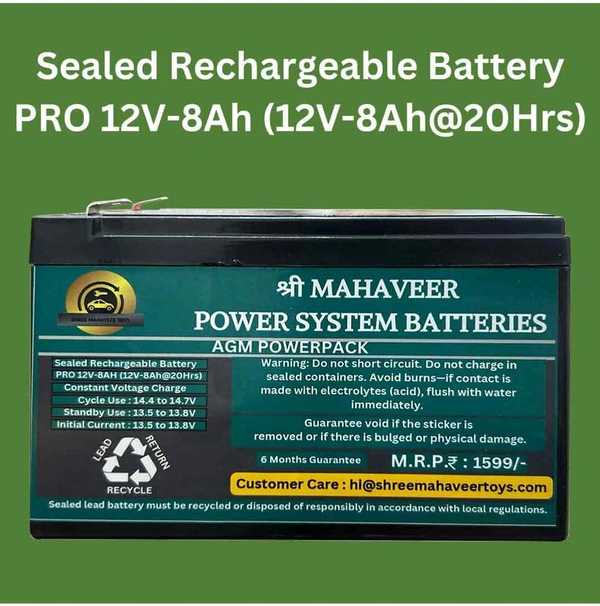- Long-Lasting Power: The Shree Mahaveer Toys 12V battery is designed to provide extended playtime, allowing your child to enjoy their ride-on toys for longer periods.
