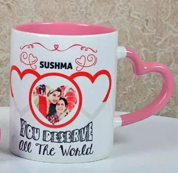 Material - CeramicSize - H : 3.5" x W : 3.2" Color - Blue color in the interior and on the handleCapacity - Can hold liquid upto 450 mlType - Coffee Mug