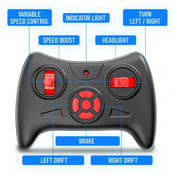 Luminous Headlights for Night Racin: Let your child race into the night with the vibrant, glowing headlights that make night-time adventures even more exciting and visually stunning.