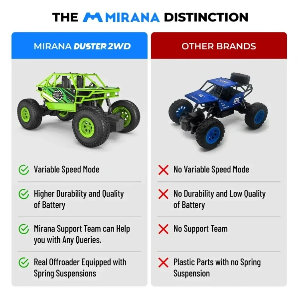 Off-Road Monster Truck for Maximum Fun: The Mirana Duster is a powerful 4WD off-road monster truck built to handle any terrain. Whether it’s gravel, grass, or dirt, your toddler can take on high-speed, off-road adventures without limits!