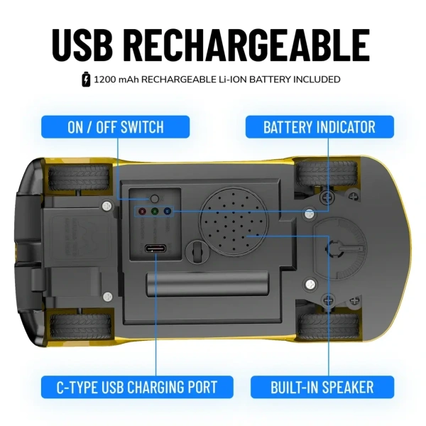1200mAh Li-ion Rechargeable Batter: The powerful 1200mAh rechargeable battery ensures your child can enjoy hours of high-speed racing without worrying about constantly replacing batteries.