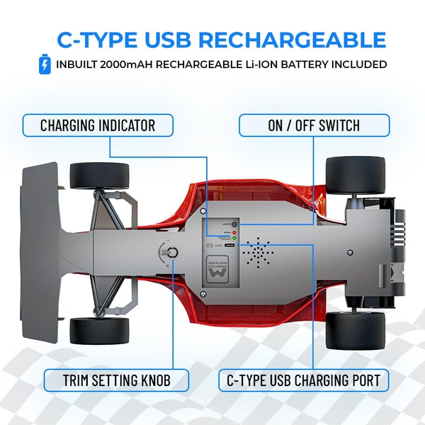 - USB RECHARGEABLE Type-C: Forget the hassle of constantly replacing batteries. This car charges quickly via USB Type-C, keeping downtime to a minimum and the action nonstop.