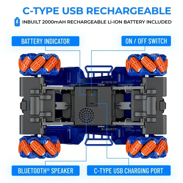 - Built-in Bluetooth Speaker – Music & Racing Combined Enjoy an interactive racing experience with the built-in Bluetooth speaker! Play music while drifting, making this RC stunt car the perfect toy for kids who love racing and entertainment.