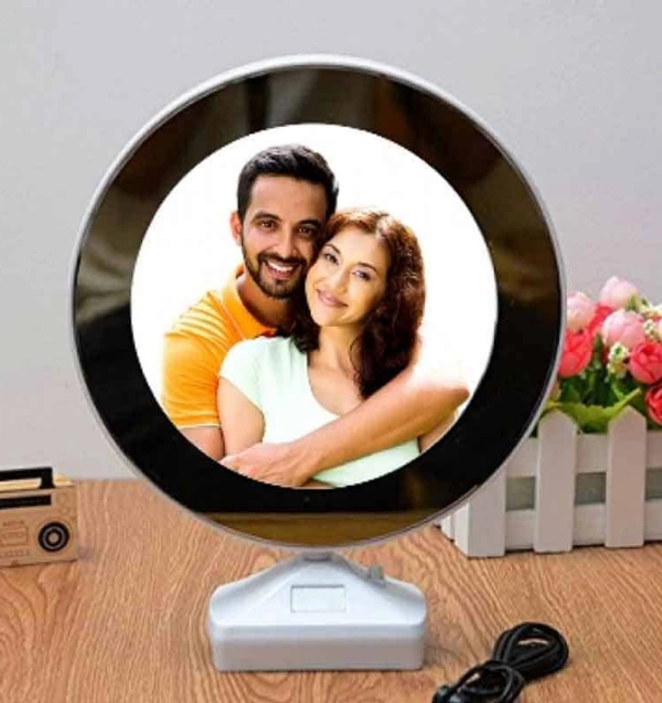 This is a special LED fitted magic mirror photo frame. The frame appears like a mirror in normal condition but the photo inside appears magically when you switch it on. The LED lights lit up and the picture inserted inside appears.